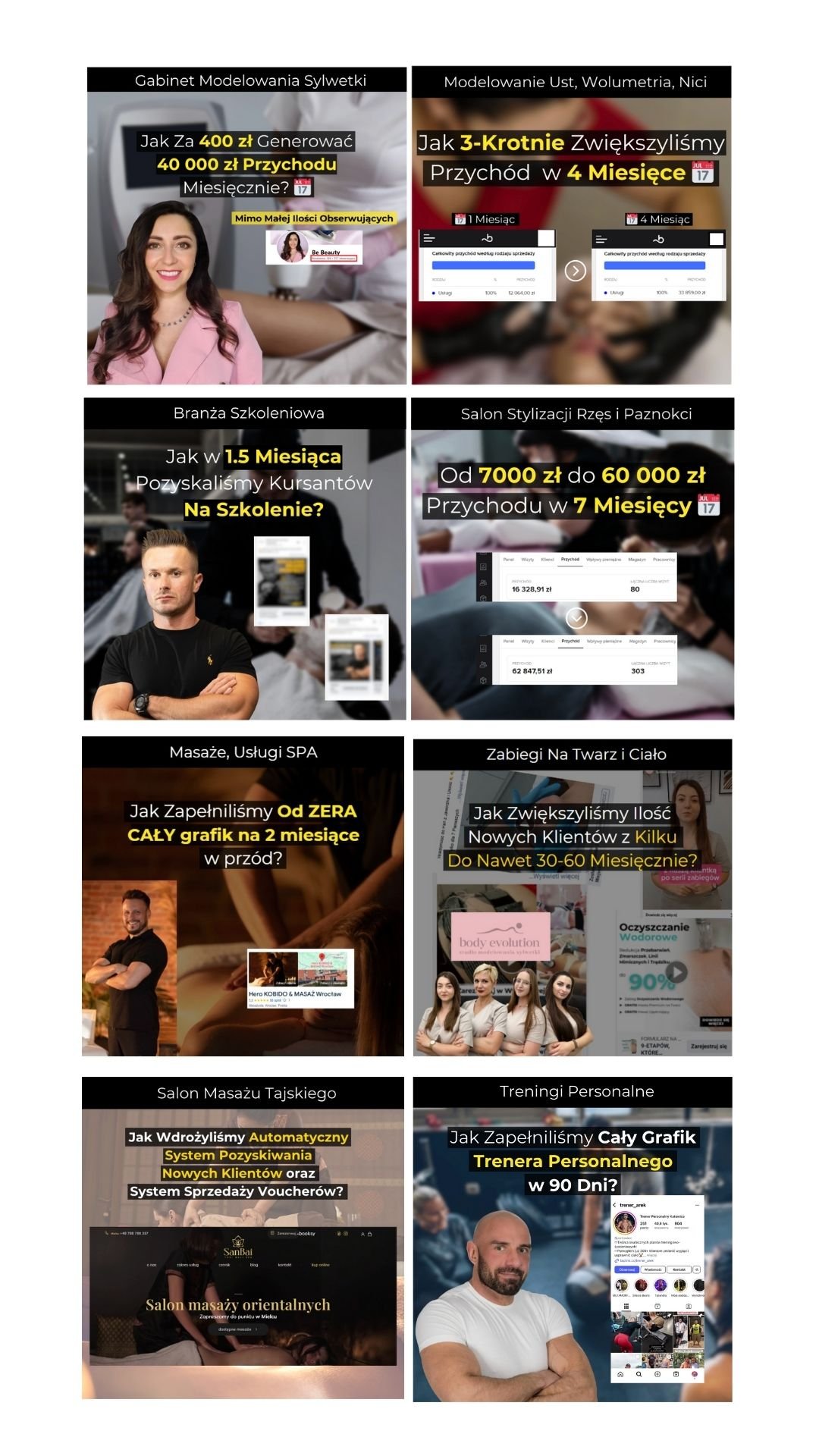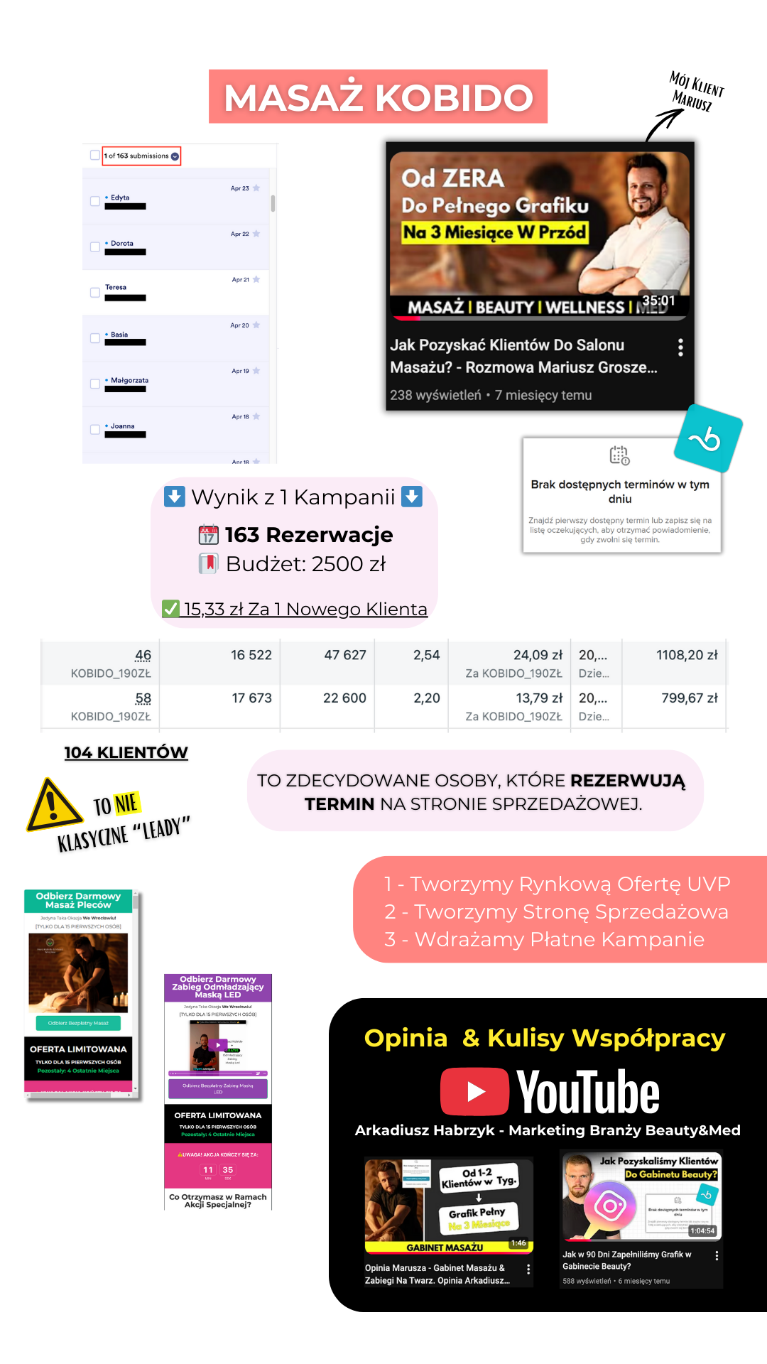 Historia Mariusza: Od kilku klientów w tygodniu do 3 miesięcy wypełnionych w przód. Udało się to osiągnąć już po 4 miesiącach współpracy! Utrzymuje ten wynik od 12 miesięcy. Wdrożyliśmy u niego automatyczny system zapisów.
