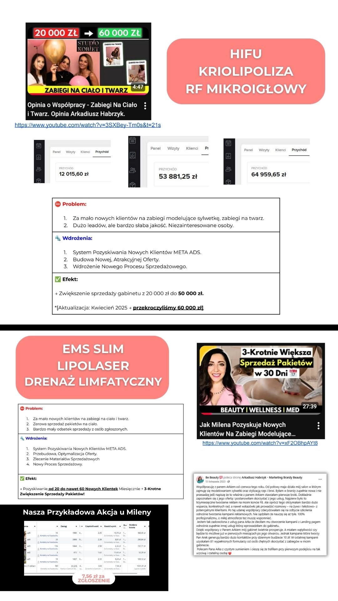 Szkolę zespoły z zakresu: obsługi i sprzedaży na żywo, odblokowywania sprzedaży gabinetu, budowania wyższej wartości zabiegów w oczach klientów oraz nowoczesnego marketingu.