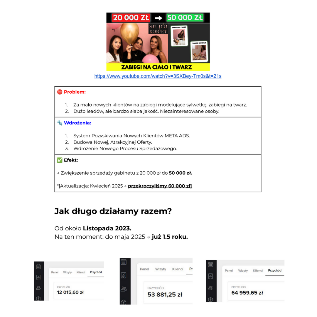 ✔️ Stabilny, przewidywalny system, który rozwija Twój gabinet miesiąc po miesiącu.