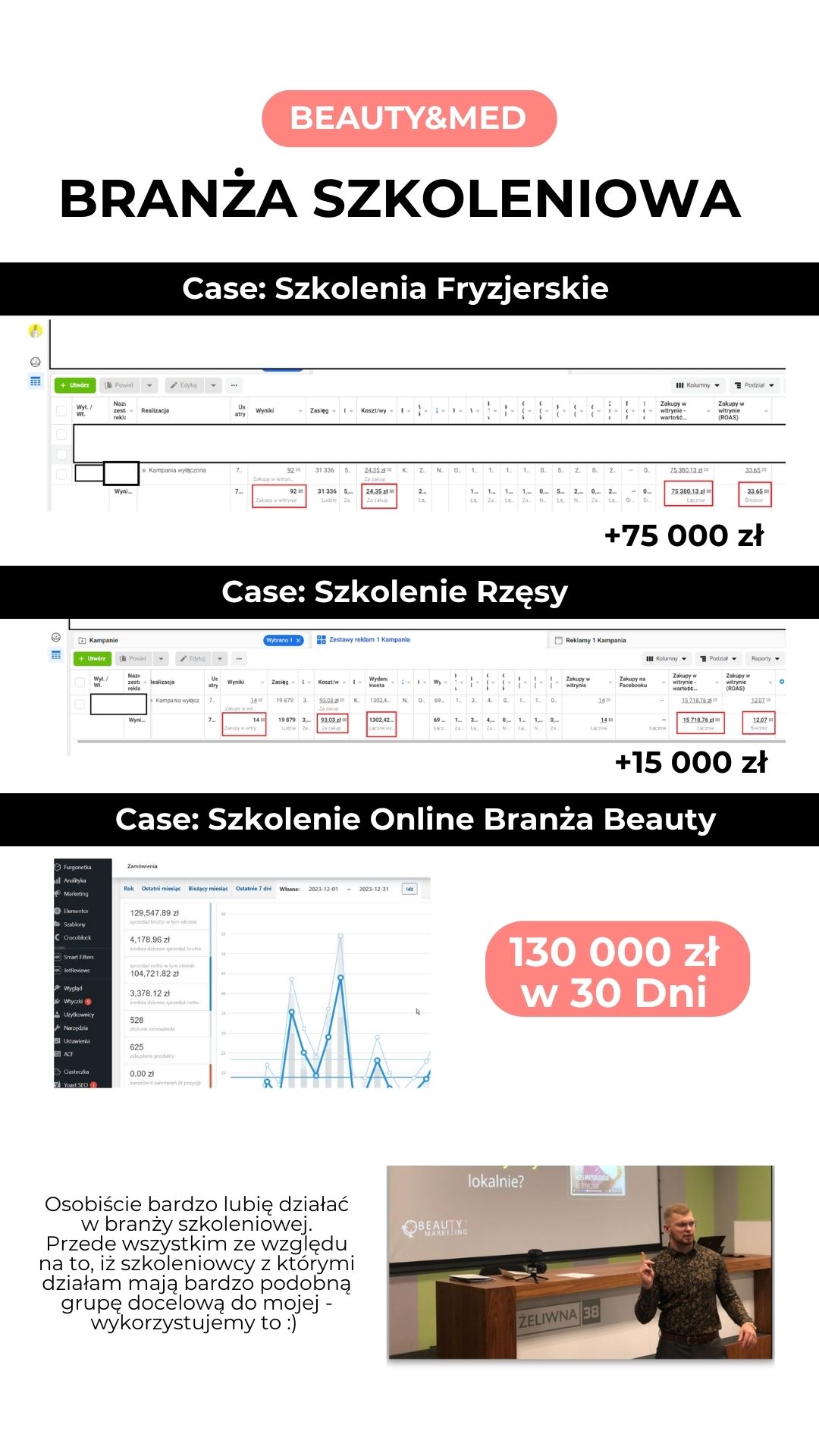 Dzięki współpracy z Agencją Beauty Marketing mam stworzoną niesamowitą bazę na rozwój marki osobistej w branży szkoleniowej oraz usług z branży beauty. Przede wszystkim mam dużo większą świadomość na temat tego jak powinien wyglądać skuteczny marketing online, co też przyczynia się do szybszego rozwijania mojej firmy. Wiem co powinnam robić, aby moje reklamy były skuteczne, jakie strategie obierać, by budować coraz większą ilość moich klientek. Nauka płatnych reklam na Facebooku i Instagramie to zdecydowanie must have każdego salonu. Zdecydowanie polecam Arka i jego agencję, bo szczerze, to oszczędziłam naprawdę wiele lat swojej pracy i nawet nie wiadomo, czy spowodowałoby to ten sam efekt
