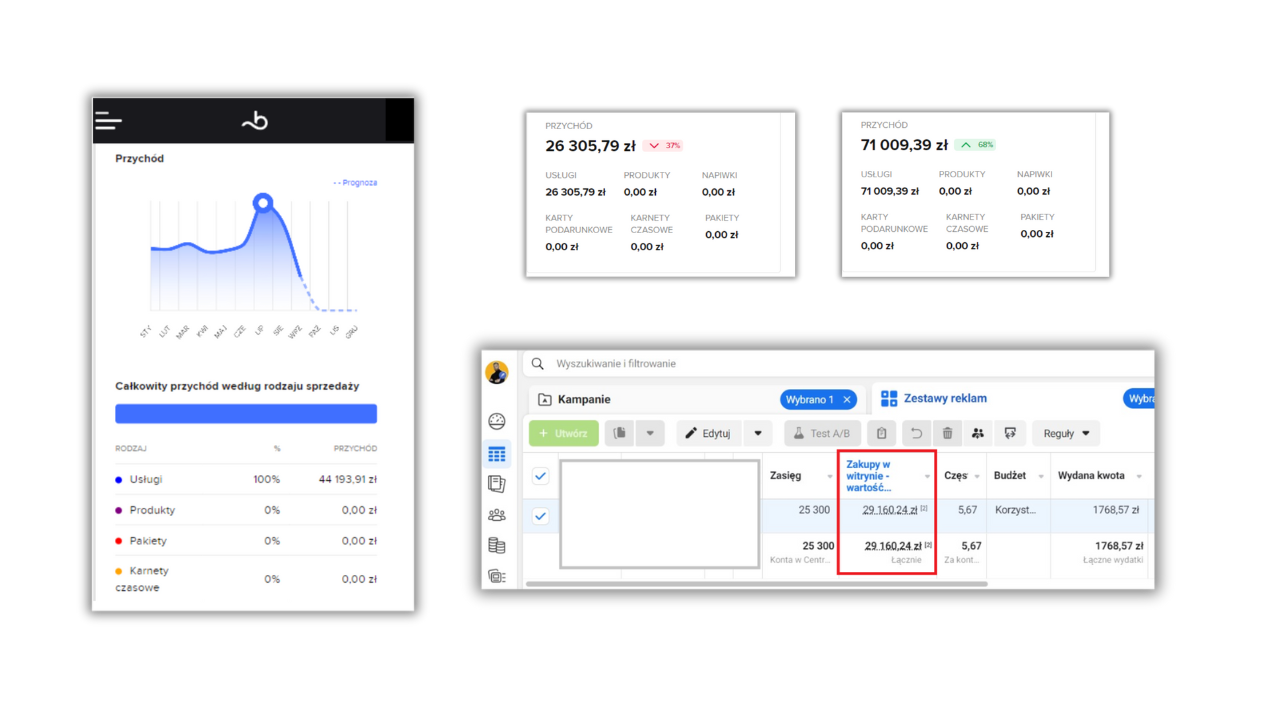 Wdrażamy z klientem działania, które bezpośrednio przyczyniają się do większej ilości zrealizowanych sprzedaży na żywo, lepszego odsetku powracalności i wyższej wartości klienta.
